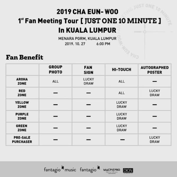 Don’t miss your chance to get Cha Eun-Woo’s autographed poster by purchasing your 2019 CHA EUN- WOO 1st Fan Meeting Tour [JUST ONE 10 MINUTE] In KUALA LUMPUR ticket at MacpiePro booth, it’s only limited to 60 pre-sale purchasers based on lucky draw basis! Don’t forget to sign up MMspot on the spot to redeem 4 x EVP60 (MacpiePro e-voucher worth RM60) and you can use it right away during the pre-sales period.