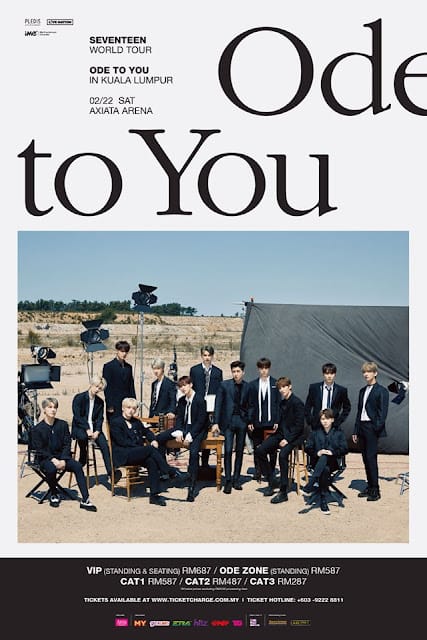 The long-awaited SEVENTEEN WORLD TOUR [ODE TO YOU] IN KUALA LUMPUR will be held at Axiata Arena on 22 February 2020, 7pm. Tickets will be priced at RM687 (Standing and seated), RM587 (ODE Zone), RM587 (CAT 1), RM487 (CAT 2) and RM287 (CAT 3) excluding RM4 processing fee. For more details on the concert, please stay tuned to iMe MY’s Facebook, Twitter and Instagram