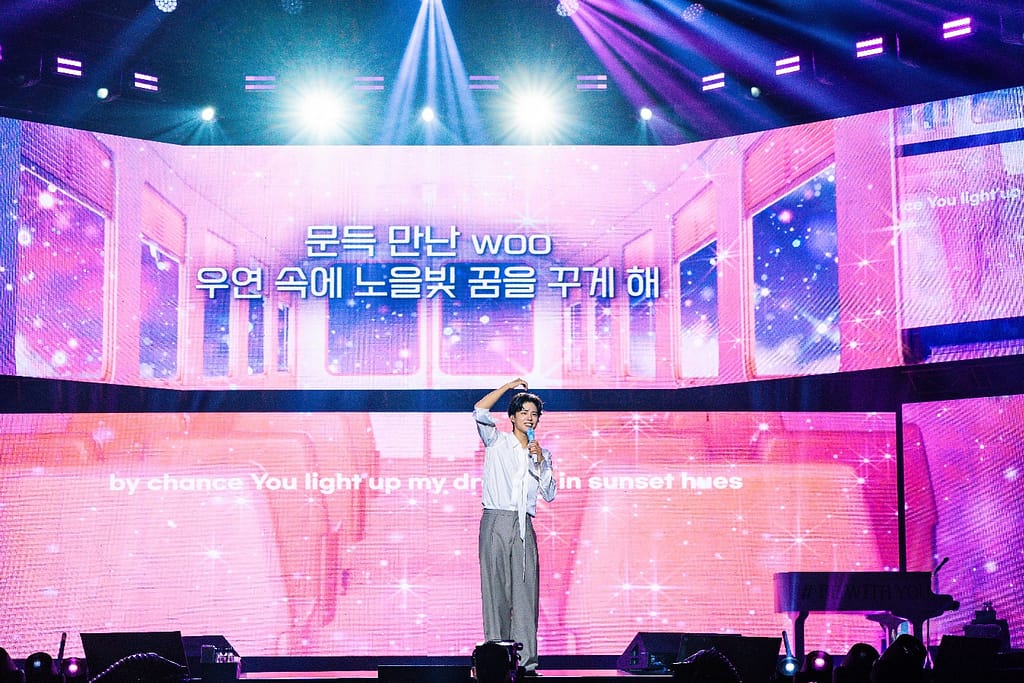 The night wasn’t all about performances. During the games segment, Park Bo Gum invited three lucky fans onstage. One unforgettable moment came when he danced to TWICE’s “What is Love” with a fan, showing off his playful side and earning delighted screams from the crowd. He later played a “Guess the Expression” game, pulling a range of cute and funny faces that fans will no doubt treasure as instant meme material.