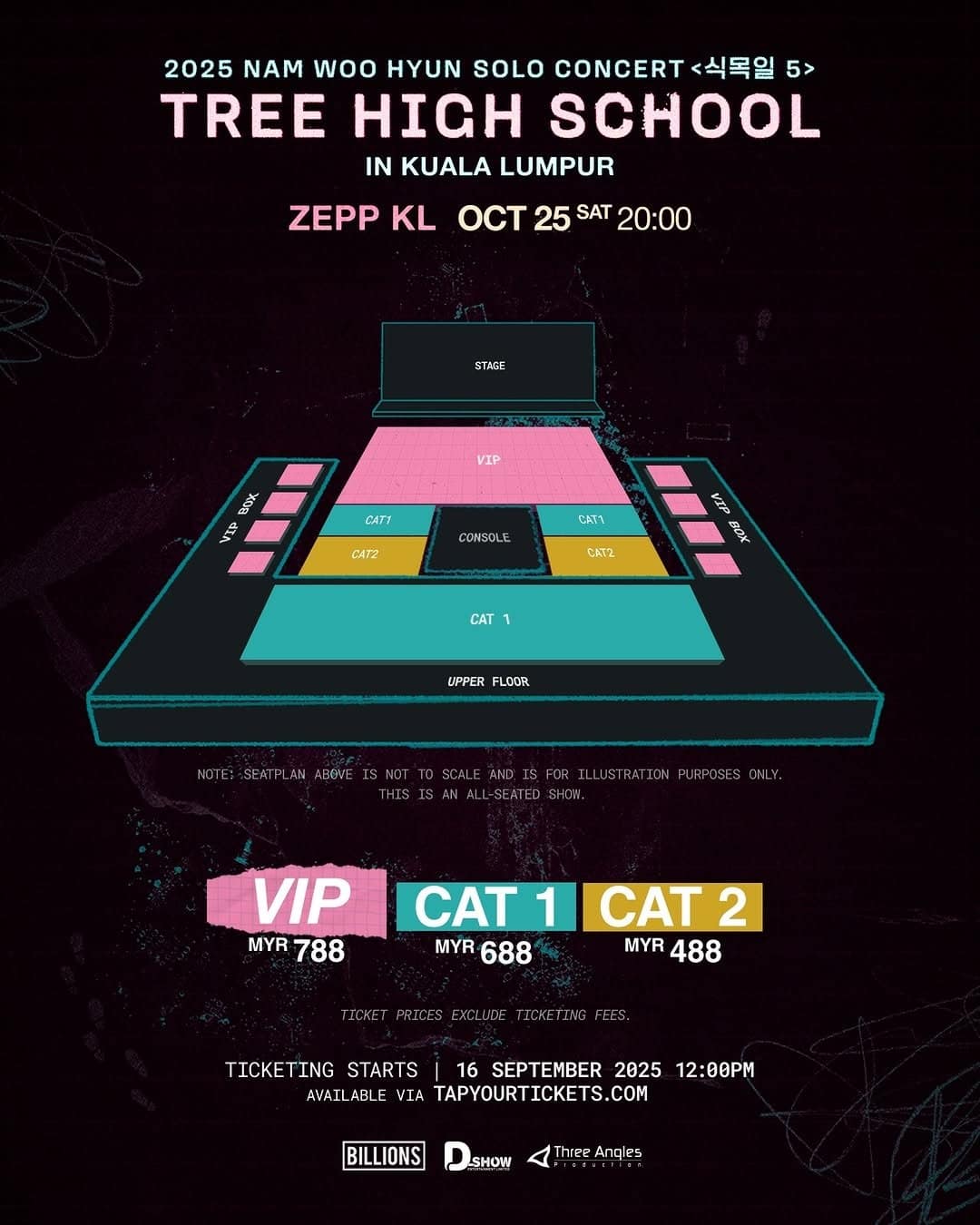 Tickets are priced from RM 488 to RM 788 and will be available through tapyourtickets.com starting 16 September 2025 at 12:00 PM.